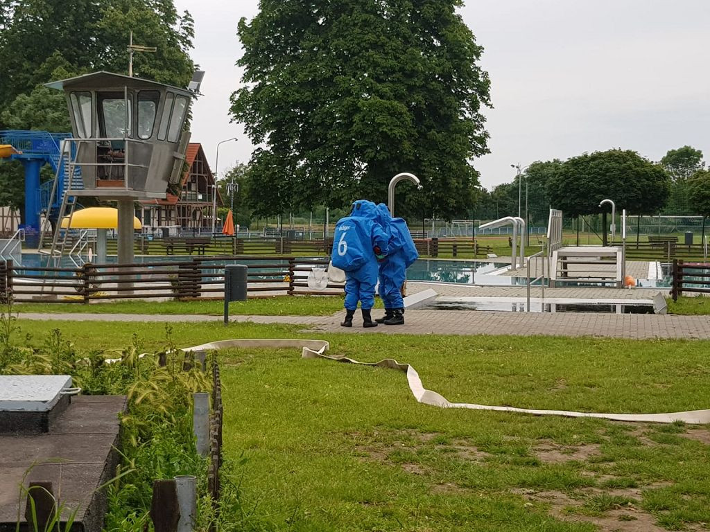 Aufgrund einer Havarie an einer Chlorgasflasche, wurden am Abend des Pfingstmontages unter dem Stichwort „CBRN“ einige Feuerwehren der Stadt Wanzleben-Börde in das Spaßbad Wanzleben alarmiert.
