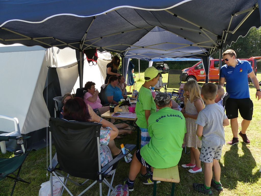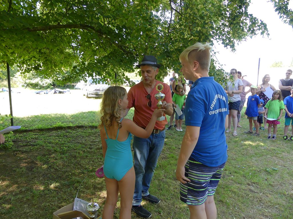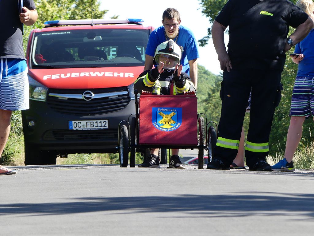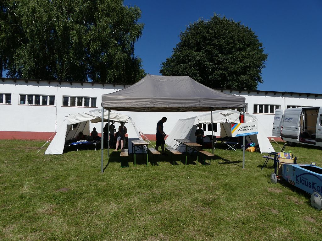 Wie auch schon im vergangenen Jahr, wurde auf dem Gelände des Oschersleber Freibades eine kleine Zeltstadt errichtet. Bei bestem Sommerwetter wurde natürlich das Freibad ausgiebig genutzt und gebadet. Nebenbei trafen sich die Jugendfeuerwehren aus Oschersleben, Hordorf, Schermcke und das Team von der Jugendfeuerwehr vom „Hohen Holz“, um ihre ersten Testläufe für das Rennen am Sonntag zu absolvieren. Am Samstagabend gab es dann eine traditionelle Nachtwanderung in Form einer Schnipseljagd. Hier mussten verschiedene markierte Punkte gefunden werden, die eine Geschichte erzählten und am Ende dann für jede Gruppe eine Überraschung in Form von Leckerleien bereithielt. Nach einer doch eher kurzen Nacht, stand nun der Start des Seifenkistenrennens auf den Plan. Aufgrund der am Morgen schon hohen Temperaturen, wurde entschieden, dass es nur ein Lauf geben wird und starten wird aus der jeweiligen Gruppe, die- bzw. der Schnellste von den Testläufen. Am Ende siegte die Jugendfeuerwehr Hordorf vor Oschersleben und Schermcke. Bei der Siegerehrung war auch Ordnungsamtsleiter Gerd Ludwig dabei, gratulierte die Sieger und übergab an die 3 ersten die Pokale. Für das leibliche Wohl sorgte die Versorgungsgruppe der Feuerwehr Hornhausen, besonders an den Kameraden Jens Fröhlich, richtete Stadtjugendfeuerwehrwartin Christine Peter ein großes Dankeschön. Aber auch allen anderen Helferinnen und Helfern, sei an dieser Stelle noch einmal herzlich gedankt. Im nächsten Jahr wird dann die 3. Auflage des Seifenkistenrennens stattfinden.