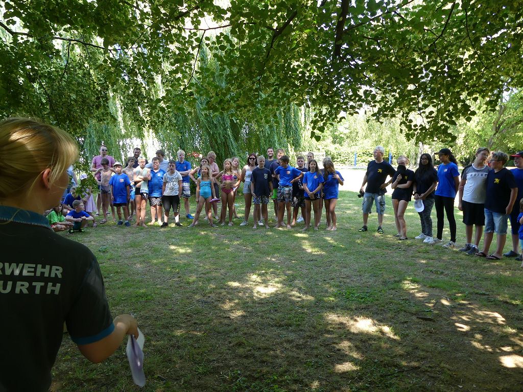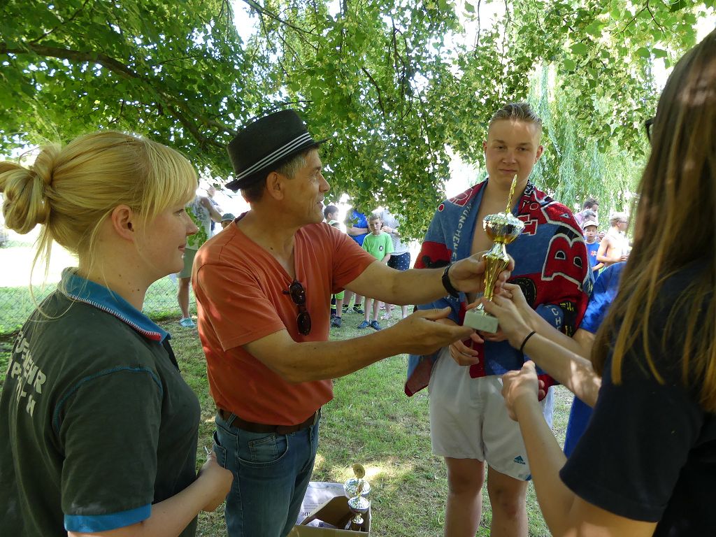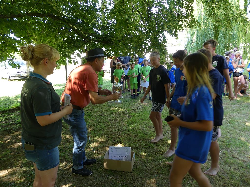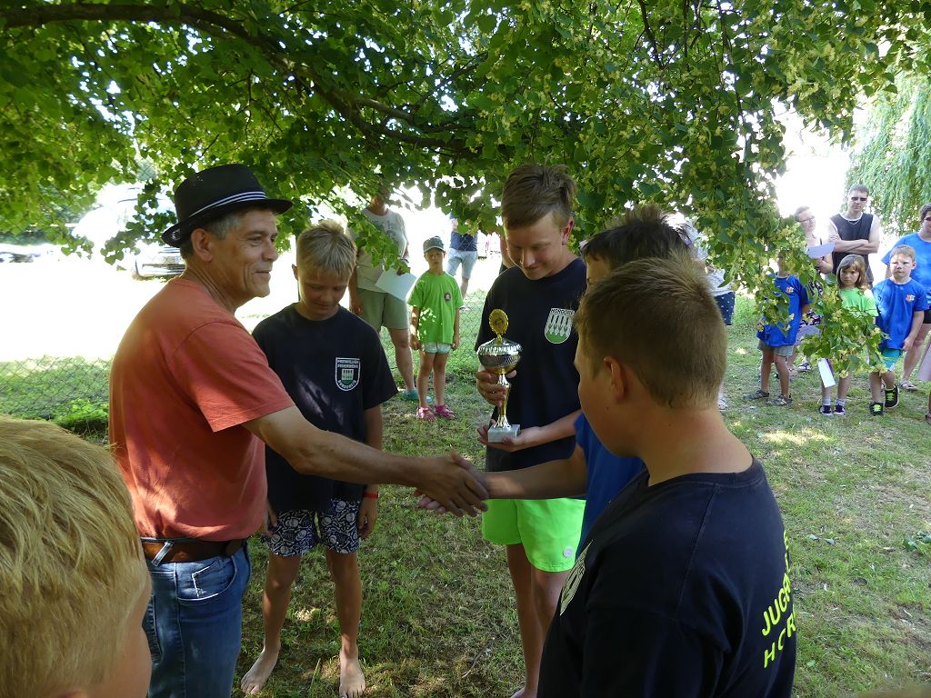 Wie auch schon im vergangenen Jahr, wurde auf dem Gelände des Oschersleber Freibades eine kleine Zeltstadt errichtet. Bei bestem Sommerwetter wurde natürlich das Freibad ausgiebig genutzt und gebadet. Nebenbei trafen sich die Jugendfeuerwehren aus Oschersleben, Hordorf, Schermcke und das Team von der Jugendfeuerwehr vom „Hohen Holz“, um ihre ersten Testläufe für das Rennen am Sonntag zu absolvieren. Am Samstagabend gab es dann eine traditionelle Nachtwanderung in Form einer Schnipseljagd. Hier mussten verschiedene markierte Punkte gefunden werden, die eine Geschichte erzählten und am Ende dann für jede Gruppe eine Überraschung in Form von Leckerleien bereithielt. Nach einer doch eher kurzen Nacht, stand nun der Start des Seifenkistenrennens auf den Plan. Aufgrund der am Morgen schon hohen Temperaturen, wurde entschieden, dass es nur ein Lauf geben wird und starten wird aus der jeweiligen Gruppe, die- bzw. der Schnellste von den Testläufen. Am Ende siegte die Jugendfeuerwehr Hordorf vor Oschersleben und Schermcke. Bei der Siegerehrung war auch Ordnungsamtsleiter Gerd Ludwig dabei, gratulierte die Sieger und übergab an die 3 ersten die Pokale. Für das leibliche Wohl sorgte die Versorgungsgruppe der Feuerwehr Hornhausen, besonders an den Kameraden Jens Fröhlich, richtete Stadtjugendfeuerwehrwartin Christine Peter ein großes Dankeschön. Aber auch allen anderen Helferinnen und Helfern, sei an dieser Stelle noch einmal herzlich gedankt. Im nächsten Jahr wird dann die 3. Auflage des Seifenkistenrennens stattfinden.