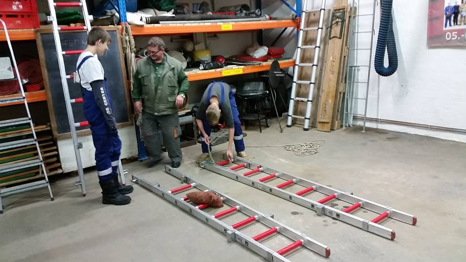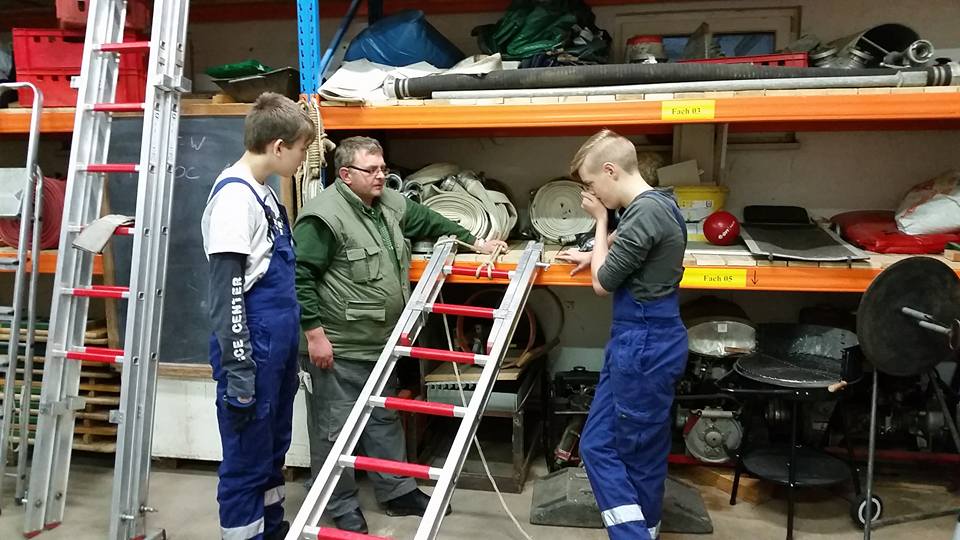 Den beiden Jugendlichen, Aven Brandes und Yves Hecht wurden von Mike Hunder und Ingo Lange Grundkenntnisse vermittelt. Dazu wurden wichtige Stiche und Bunde, die zur Sicherung der Einsatzkräfte und der zur Eisrettung erforderlichen Geräte, wie z.B. Steckleitern, geübt und das wissen darüber gefestigt.