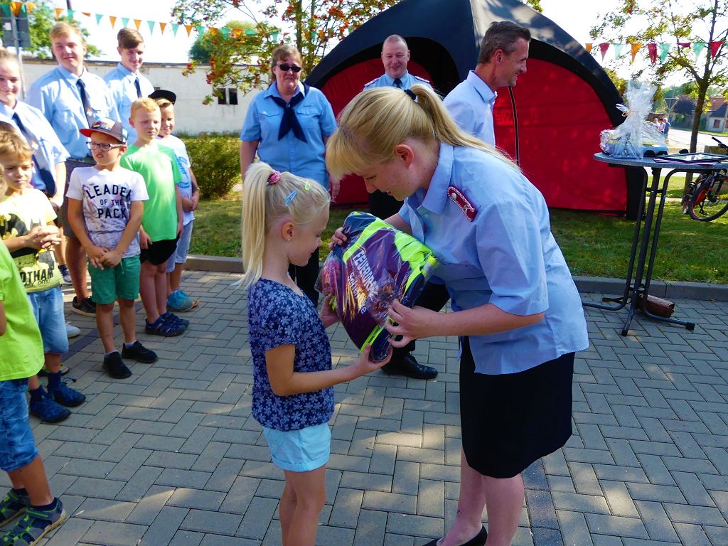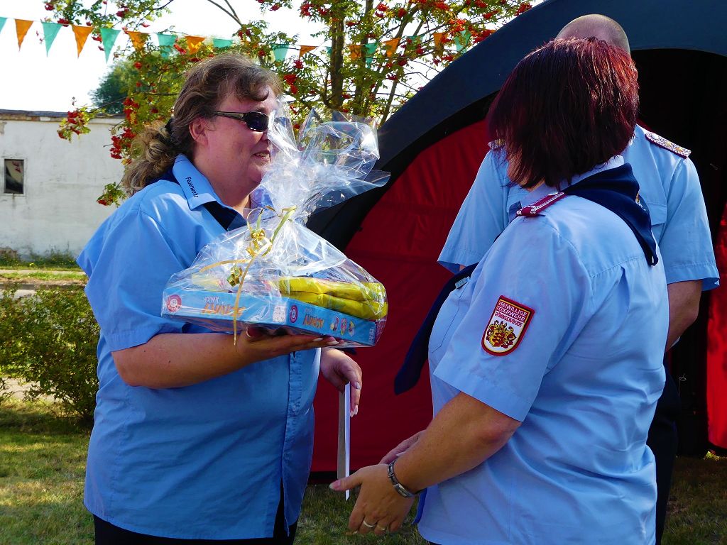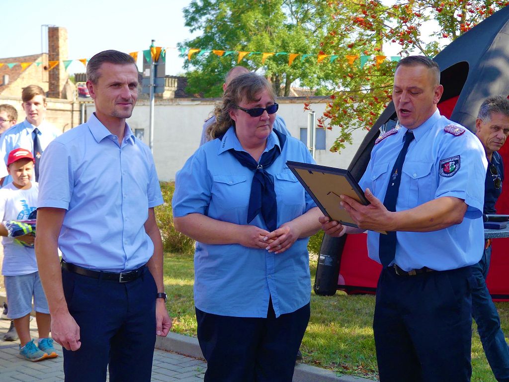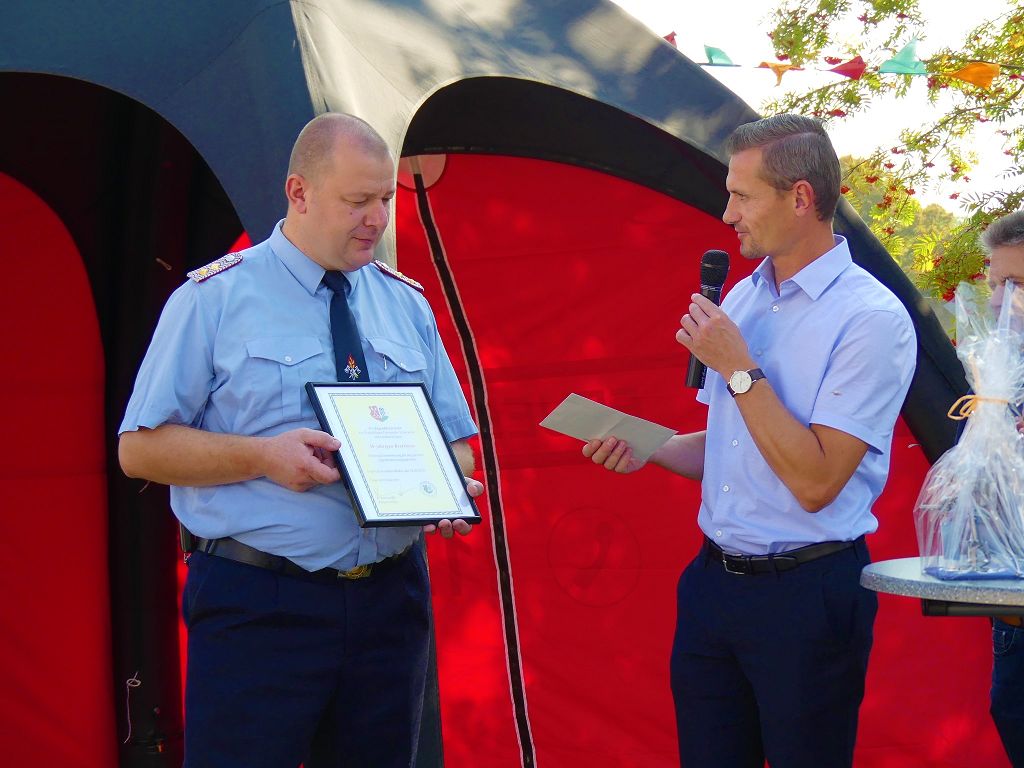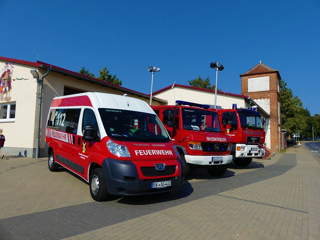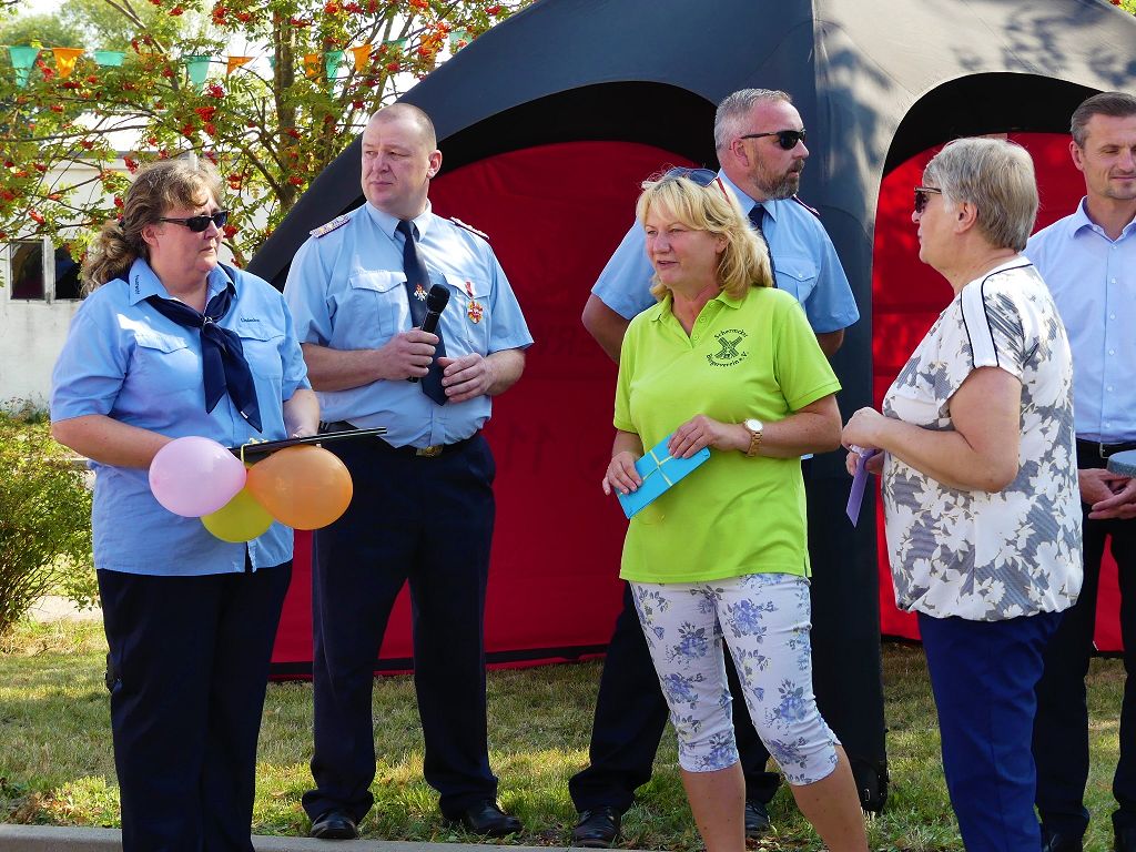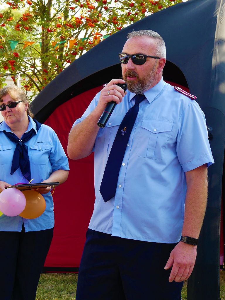 So nahm die Kinderfeuerwehr „Feuerdrachen“ Schermcke an diesem Tag, offiziell ihren Dienst auf. Ortswehrleiter Heiko Lindecke konnte zur Eröffnung folgende Gäste begrüßen: Bürgermeister Benjamin Kanngießer, Ordnungsamtsleiter Gerd Ludwig, Ortsbürgermeister Marcel Ott, Stadtwehrleiter Sven Könnecke, Stadtjugendfeuerwehrwartin Christine Peter, Kerstin Hunder vom Feuerwehrverband Börde e.V., Vertreter des Heimatvereins, sowie Pfarrerin Helga Pötzsch. Bürgermeister Benjamin Kanngießer freute sich in seinen Grußworten, dass es bereits die 2. Kinderfeuerwehr ist, die im Bereich der Stadt Oschersleben gegründet wurde. Im März 2016 nahm die Zentrale Oschersleber Kinderfeuerwehr „Bodelöschis“ ihren Dienst auf. Stadtwehrleiter Sven Könnecke freute sich ebenfalls über die Neugründung, da die Mitgliedschaft in einer Kinder- und Jugendfeuerwehr doch eine Alternative zu Handy, Computer und Video darstellen. Die Kinder- und Jugendfeuerwehren der Stadt Oschersleben dienen aber nicht nur der Nachwuchsgewinnung, sondern bietet der gemeinsame Dienst auch eine gute Möglichkeit soziale Kontakte zu knüpfen, Team- und Zusammengehörigkeit zu erfahren und gemeinsame erlebnisreiche Stunden zu erleben. So konnte der Stadtwehrleiter die Gründungsurkunde, ausgestellt vom Landesjugendfeuerwehrwart Thomas Voß, an Susi Lindecke übergeben. 11 Kinder, ab einem Alter von 6 Jahren durften nun ihre Feuerwehruniformen in Empfang nehmen und freuten sich riesig darüber. Susi und Heiko Lindecke, sowie Jan Rettig werden in Zukunft mit den Kindern üben und trainieren. Geburtstag feierte aber nicht nur die Kinderfeuerwehr. Seit 1989 gibt es nämlich die Jugendfeuerwehr Schermcke. Zu diesem 30. Jubiläum kamen ebenfalls viele Glückwünsche. So wurde auch hier eine Ehrenurkunde überreicht. In den Grußworten wurde auch daran erinnert, dass schon seit mehr als 60 Jahren mit Jugendlichen in der Ortsfeuerwehr Schermcke gearbeitet wird. Bis zum Jahr 1989 unter den Namen „AG Junge Brandschutzhelfer“. Im Anschluss gab es noch einen weiteren Grund zur Freude. Ortwehrleiter Heiko Lindecke wurde vom Feuerwehrverband Börde e.V. mit dem Ehrenstern in Bronze für seine langjährige Tätigkeit als Ortswehrleiter und seine Verdienste zum Erhalt der Ortsfeuerwehr ausgezeichnet. Nachdem offiziellen Teil, begann der Tag der offenen Tür, zu dem sich zahlreiche Gäste auf dem Gelände der Feuerwehr tummelten. Für die Kinder gab es eine Hüpfburg und verschiedene Spiele. Hier konnten die kleinen „Feuerwehrdrachen“ schon ihr Künste unter Beweis stellen. So wurde den ganzen Tag ein Jubiläums- und Familienfest in Schermcke gefeiert.