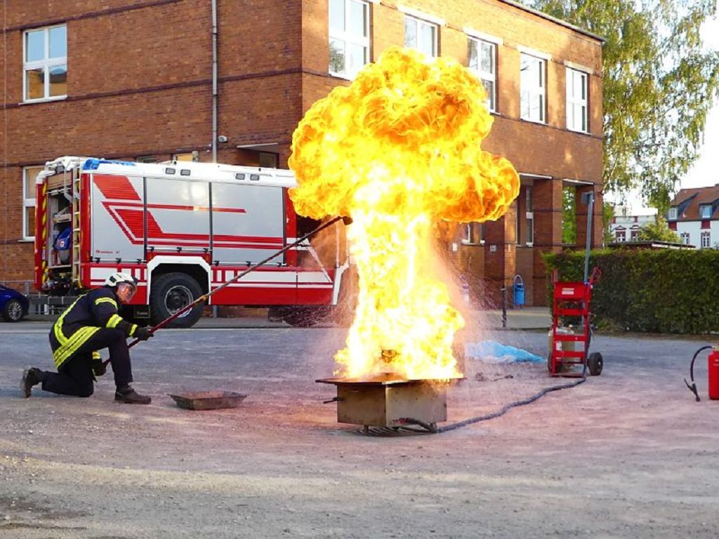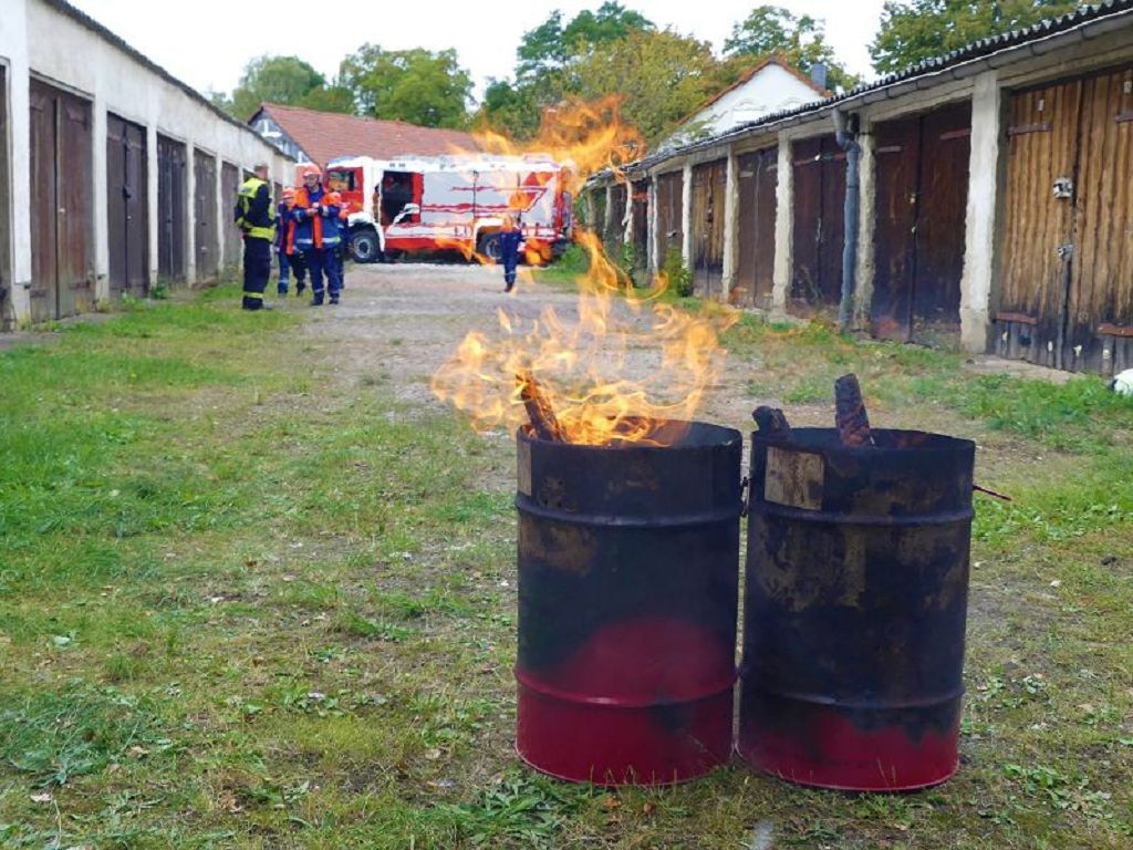 fand nun als Berufsfeuerwehrtag statt. Start war am Freitag um 18.00 Uhr mit einem regulären Dienstabend. Zu Besuch war der Ortsbrandmeister und Brandschutzaufklärer der Feuerwehr Hoiersdorf, Michael Lange. Gleich zu Beginn erläuterte er die Wirkungsweise der verschiedenen Feuerlöscher. Highlight war die Vorführung einer Fettexplosion. Hierzu wurde ein brennender Topf auf einem Herd simuliert. Michael Lange gab nun Wasser hinein, um den Brand zu löschen und so kam es zu dieser gewaltigen Explosion. Deshalb auch hier wieder der Hinweis, „brennendes Fett in einem Topf oder Pfanne niemals mit Wasser löschen“. Auch wie gefährlich es ist, wenn eine Spraydose explodiert wurde gezeigt. An dieser Stelle ein herzliches Dankeschön an Michael Lange, für einen interessanten Ausbildungsabend. Im Anschluss war aber nicht wie gewohnt Schluss, sondern nun startete das lange Jugendfeuerwehrwochenende. Zu Beginn gab es eine Einweisung in den Ablauf der nächsten zwei Tage und dann wurde der Schulungsraum zu einem großen Schlafsaal umfunktioniert. Der Abend stand dann für gemeinsame Aktivitäten zur Verfügung. Ein lauter und ungewohnter Gong beendet am frühen Samstagmorgen die Nachtruhe. Aus den Lautsprechern kam die Information über eine ausgelöste Brandmeldeanlage. So wurden die am Vorabend eingeteilten Fahrzeuge besetzt und es ging in Richtung Einsatzstelle. Noch während der Fahrt kam der Einsatzabbruch durch die eigene Leitstelle und es ging wieder zurück zur Feuerwache. Hier wurde gemeinsam gefrühstückt und die noch dazugekommen Mitglieder begrüßt und eingeteilt. Jetzt war Zeit für einen Ausbildungsvormittag. In zwei Gruppen aufgeteilt wurde u.a. Fahrzeug -und Knotenkunde geschult. Am Nachmittag stand dann noch eine Ausbildungseinheit mit der Drehleiter auf dem Dienstplan. Während der Ausbildung kam dann erneut ein Einsatz für die jungen Brandschützer. Der Rettungswagen musste zu einem Verkehrsunfall ausrücken, um eine verletzte Person zu versorgen. Das Tanklöschfahrzeug wurde nachgefordert, um Unterstützung zu leisten. Eine weitere Alarmierung führte anfangs zu einem Routineeinsatz. Aufgrund eines Defektes verlor ein Pkw Betriebsstoffe. Vor Ort hatten die jungen Einsatzkräfte dann aber mit aufgebrachtem Verkehrsteilnehmer zu tun, die einfach keine Geduld zum Warten hatten. Einer fuhr sogar eine Einsatzkraft an, welche dann rettungsdienstlich versorgt werden musste. Nachdem Mittagessen und einer kleinen Pause wurde dann ein Mülltonnenbrand gemeldet. Hier wurde schnell klar, das Feuer hatte sich auf eine angrenzende Garage ausgebreitet. Ein Löschangriff mit drei Trupps musste aufgebaut werden. Der Angriffstrupp ging unter Atemschutz zur Menschenrettung in die verqualmte Garage vor und konnte die vermisste Person retten. Am späten Nachmittag ereignete sich ein ähnliches „Brandereignis“. Diesmal war die alte Feuerwache verqualmt und auch hier mussten Personen gerettet werden. Kurz vor dem Abendessen löste wieder eine automatische Brandmeldeanlage aus. Hier wurde den Kindern die Aufbau- und Funktionsweise einer Brandmeldeanlage noch einmal erläutert. Schon fast im Schlafmodus gongte es zum letzten Mal an diesem Tag. Im Bereich des Schützenplatzes sollte ein Rettungshubschrauber landen, dieser musste ausgeleuchtet werden. So wurden verschiedene Beleuchtungsmittel aufgebaut. Nach diesem Einsatz war dann aber endlich Nachtruhe angesagt. Um Punkt 7.00 Uhr war diese aber schon wieder beendet. Erneut löste eine Brandmeldeanlage aus. Noch etwas verschlafen ging es zum Einsatzort und so wie das Wochenende begonnen hatte, so endete es, mit einem Einsatzabbruch durch die Leitstelle. Jetzt war aufräumen angesagt und alle packten fleißig mit an. Nach einer kurzen Auswertung des Wochenendes, ging es zum abschließenden gemeinsamen Frühstück. Hier ertönte kein Gong mehr, aber die Rettungsleitstelle in Haldensleben löste nun einen echten Alarm für die Oschersleber Feuerwehr aus. Im Ortsteil Andersleben wurde ein Brand von Buschwerk gemeldet. Die Kinder waren hellauf begeistert, live bei einem echten Alarm dabei zu sein. Nach einer genauen Erkundung wurde aber kein Brand festgestellt und der reale Einsatz konnte abgebrochen werden. Jugendfeuerwehrwart David Noack und sein Stellvertreter Kevin Löhning, bedanken sich herzlich bei allen Helferinnen und Helfern für die Unterstützung an diesem Wochenende.