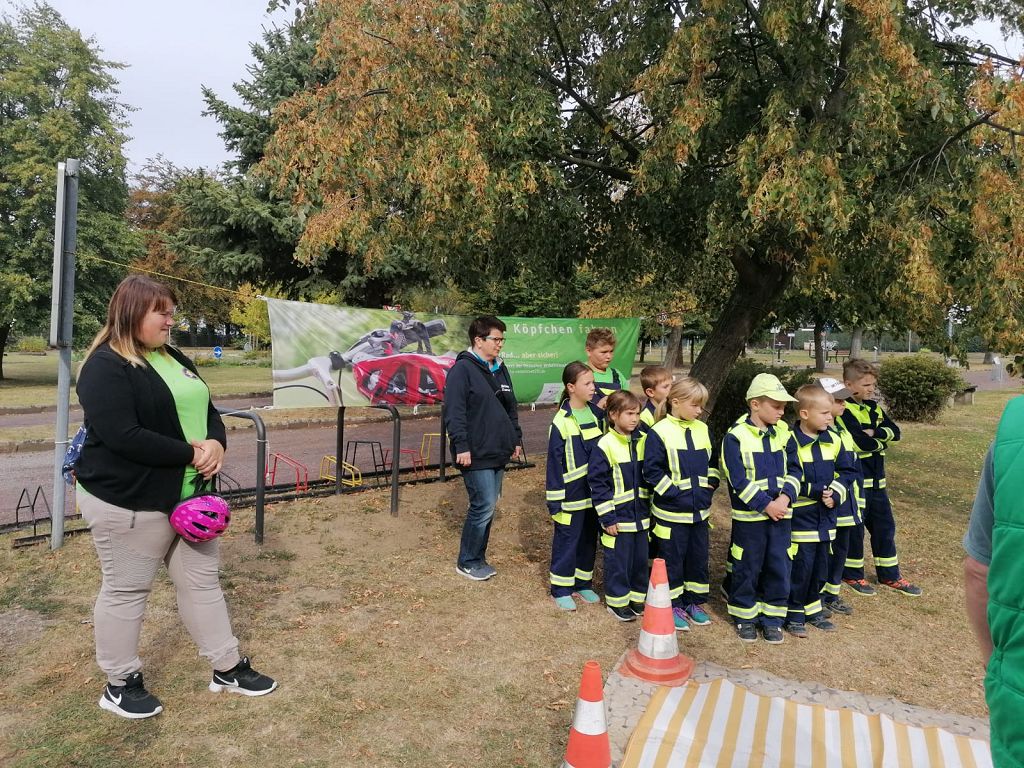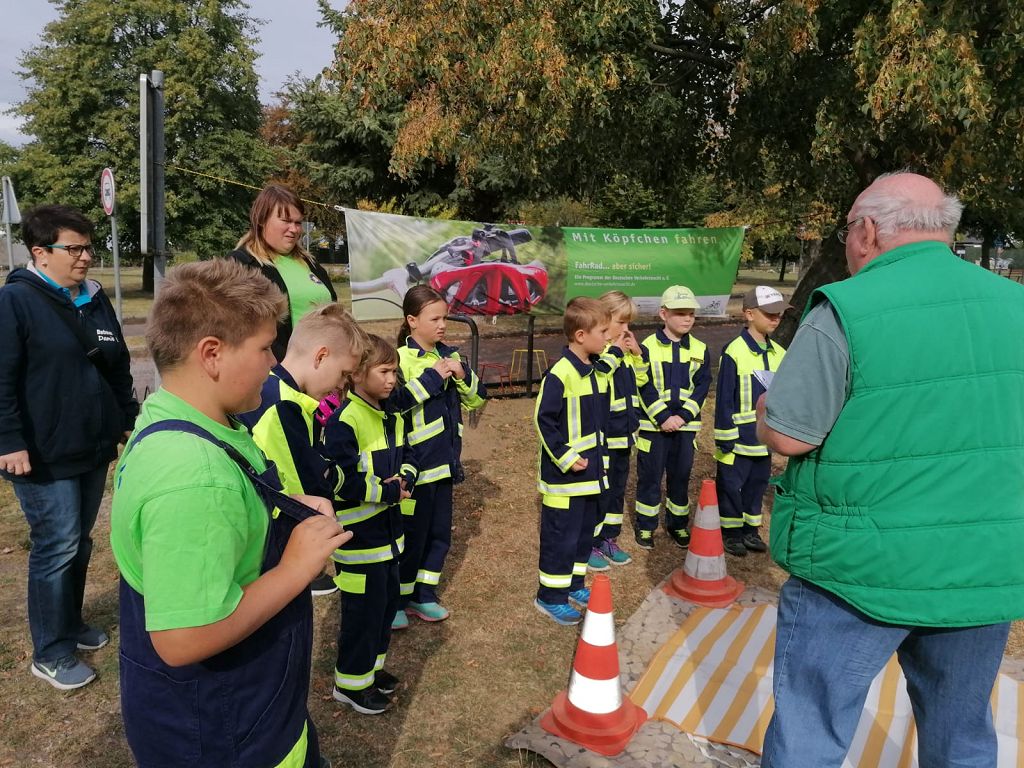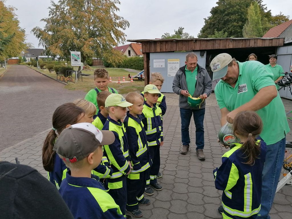 An diesem Tag ging es rund um das Thema Verkehrssicherheit. Gleich zu Beginn des Besuches war das Thema Fahrrad an der Reihe. So erklärte Klaus Glandien, weshalb es so wichtig ist ein verkehrssicheres Fahrrad zu nutzen. So wurde auf die Funktion der Beleuchtung und der Bremsen eingegangen. Anhand von einem Ei und einer Melone, wurde den Kindern erläutert wie wichtig es ist ein Fahrradhelm zu tragen. Aber nicht nur das Fahrrad im Straßenverkehr war ein Thema, sondern auch das mitfahren in einem Auto. Anhand eines Simulators staunten die Kinder was passiert, wenn man nicht angeschnallt ist. Dann ging es im Anschluss in den eigentlichen Verkehrsgarten wo die verschiedenen Verkehrszeichen erklärt wurden. Dann durften die Kinder sich mit Fahrrad, Roller und Kettcar “austoben“. Natürlich aber unter der Beachtung der Verkehrsregeln. So verlebten die Kinder einen schönen Vormittag im Verkehrsgarten Völpke. Kinderfeuerwehrwartin Manon Kluge möchte sich recht herzlich bei Klaus Glandien und seinem gesamten Team bedanken. Ebenfalls geht ein Dankeschön an die Feuerwehr Hadmersleben, die für den Transport nach Völpke sorgten.