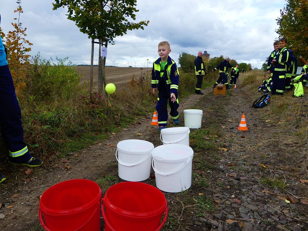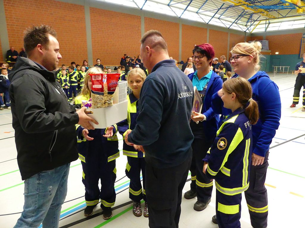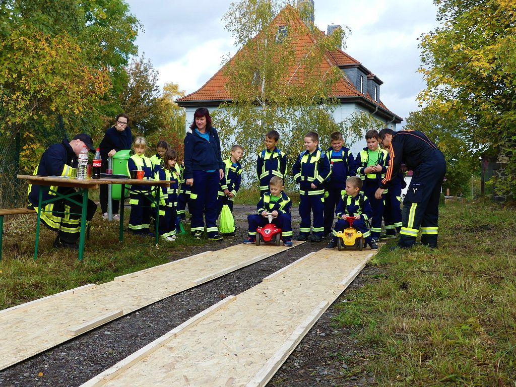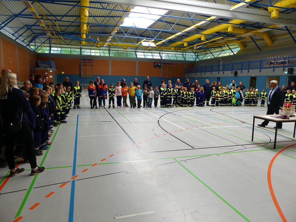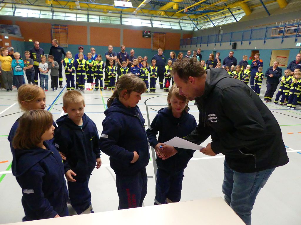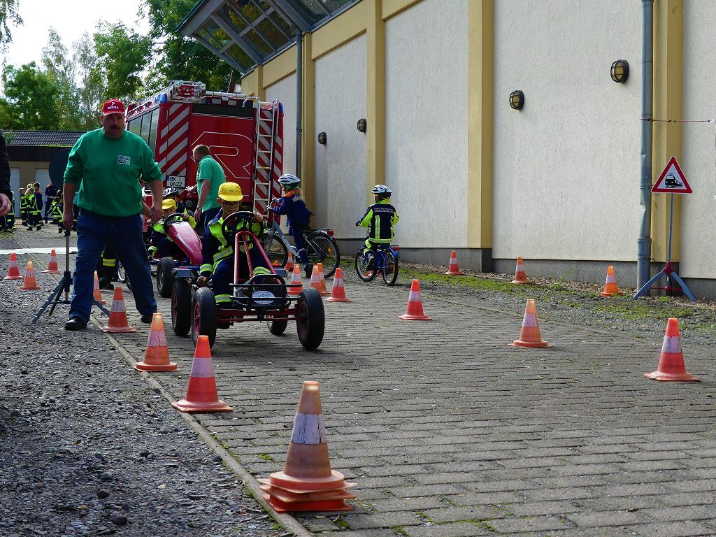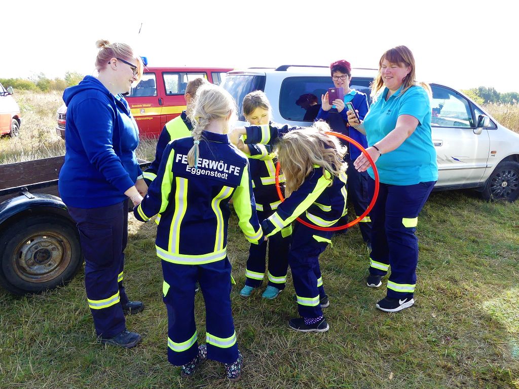 So nahmen mehr als 100 Kinder mit ihren Betreuern daran teil. Mehrere Stationen mit verschiedenen Aufgaben mussten absolviert werden. Darunter waren einige Geschicklichkeits- und Schnelligkeitsspiele. Diese brachten den kleinen Brandschützern viel Spaß. Aber auch ihr Feuerwehrwissen mussten die Kleinen schon unter Beweis stellen. Beim Wissenstest galt es die ersehnten Urkunden in Bronze, Silber und Gold, mit den richtigen Antworten zu erreichen., was auch allen Teilnehmern gelang. Am Ende siegte die Blaulichtbande Gruppe 1 aus Ausleben vor den Alltertaler Löschdrachen Gruppe 1 aus Eilsleben, knapp vor den Kinderfeuerwehren Feuerwölfe Eggenstedt und den Bode Löschis Gruppe 1 aus Oschersleben, welche gemeinsam den dritten Platz belegten. Aber auch alle anderen hatten sichtlich Spaß beim Wettkampf. Die Kinderfeuerwehr Eggenstedt erhielt während der Siegerehrung ein Geschenk und eine Urkunde zu ihrem 5. Geburtstag. An dieser Stelle noch einmal Herzlichen Glückwunsch. Der Feuerwehrverband Börde e.V. bedankte sich ganz herzlich bei der Kreisverkehrswacht Oschersleben. Klaus Glandien unterstützt mit seiner Truppe schon seit vielen Jahren die Feuerwehren im Verbandsgebiet.  Vorstandsvorsitzender Harald Hinz und Verbandsjugendwart Thomas Ehrhardt bedankten sich noch einmal recht herzlich bei allen Kinderfeuerwehren für die Teilnahme.