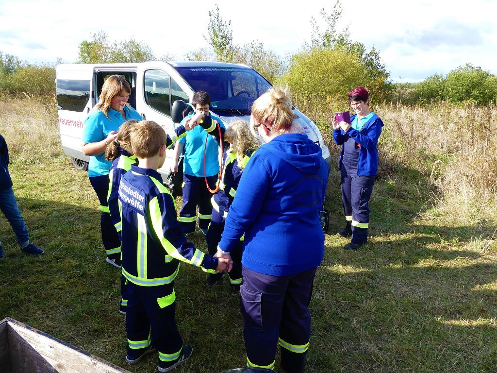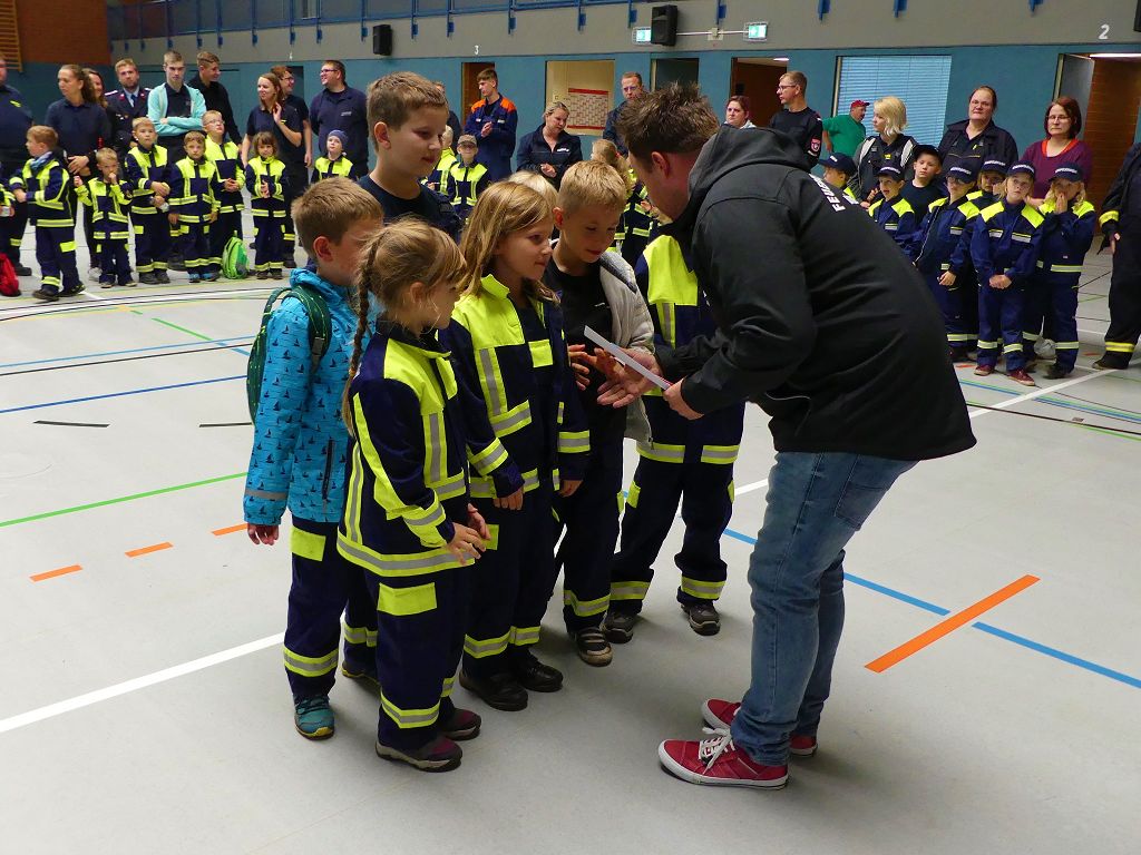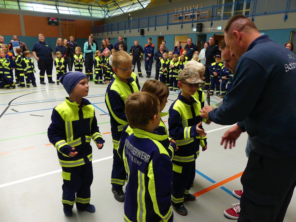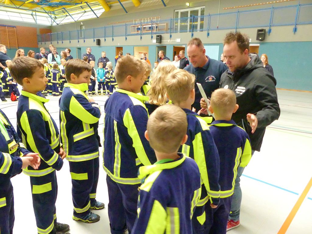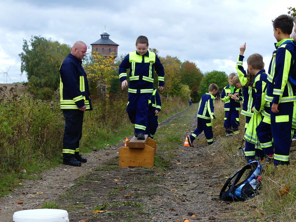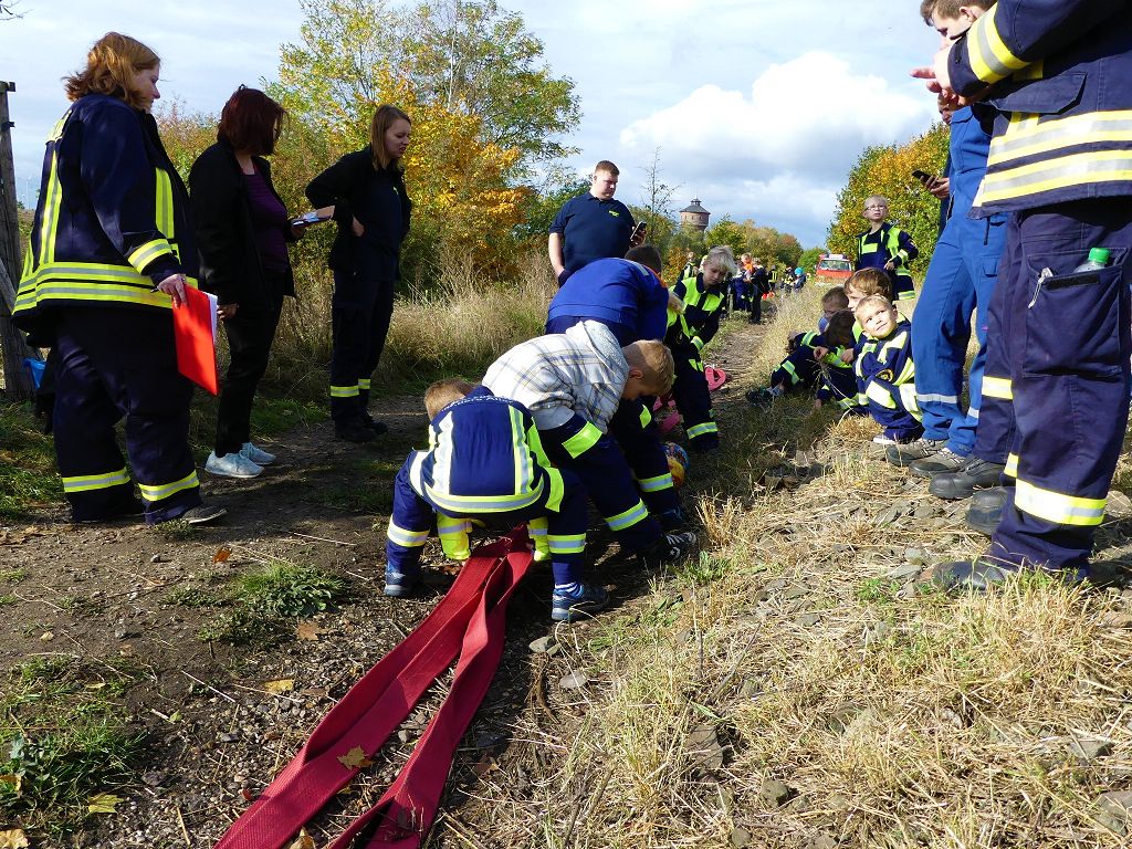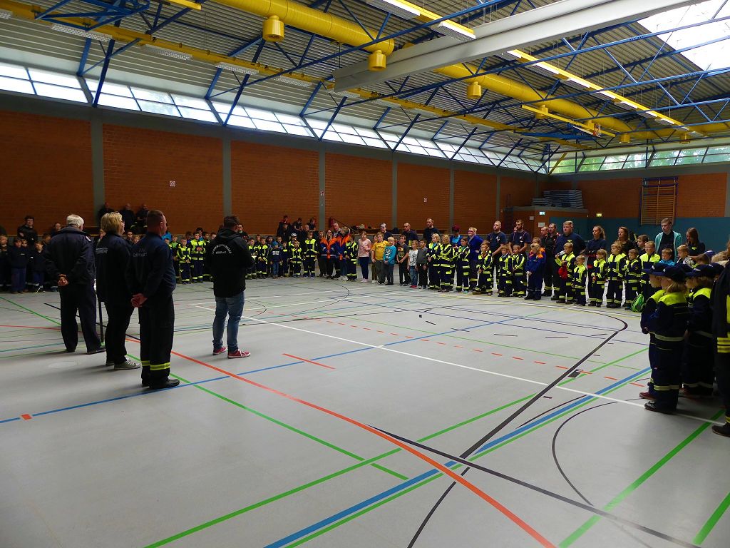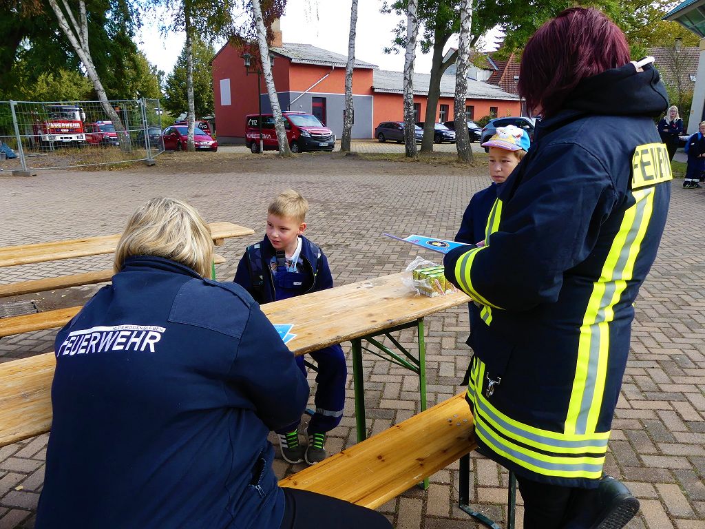 So nahmen mehr als 100 Kinder mit ihren Betreuern daran teil. Mehrere Stationen mit verschiedenen Aufgaben mussten absolviert werden. Darunter waren einige Geschicklichkeits- und Schnelligkeitsspiele. Diese brachten den kleinen Brandschützern viel Spaß. Aber auch ihr Feuerwehrwissen mussten die Kleinen schon unter Beweis stellen. Beim Wissenstest galt es die ersehnten Urkunden in Bronze, Silber und Gold, mit den richtigen Antworten zu erreichen., was auch allen Teilnehmern gelang. Am Ende siegte die Blaulichtbande Gruppe 1 aus Ausleben vor den Alltertaler Löschdrachen Gruppe 1 aus Eilsleben, knapp vor den Kinderfeuerwehren Feuerwölfe Eggenstedt und den Bode Löschis Gruppe 1 aus Oschersleben, welche gemeinsam den dritten Platz belegten. Aber auch alle anderen hatten sichtlich Spaß beim Wettkampf. Die Kinderfeuerwehr Eggenstedt erhielt während der Siegerehrung ein Geschenk und eine Urkunde zu ihrem 5. Geburtstag. An dieser Stelle noch einmal Herzlichen Glückwunsch. Der Feuerwehrverband Börde e.V. bedankte sich ganz herzlich bei der Kreisverkehrswacht Oschersleben. Klaus Glandien unterstützt mit seiner Truppe schon seit vielen Jahren die Feuerwehren im Verbandsgebiet.  Vorstandsvorsitzender Harald Hinz und Verbandsjugendwart Thomas Ehrhardt bedankten sich noch einmal recht herzlich bei allen Kinderfeuerwehren für die Teilnahme.