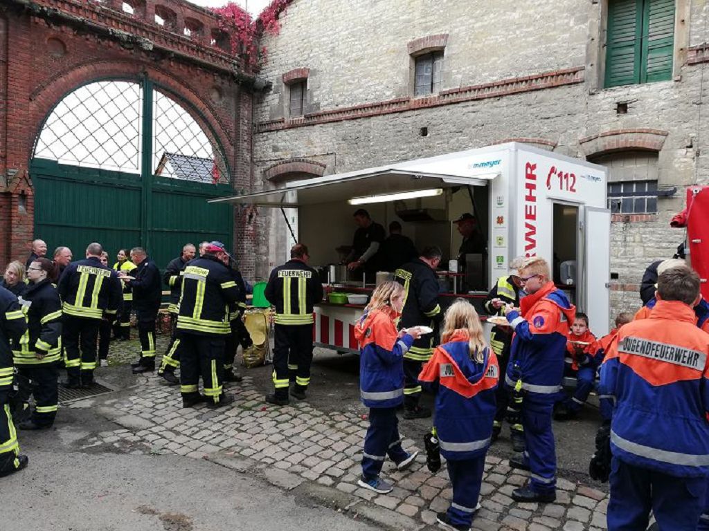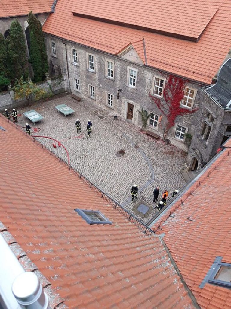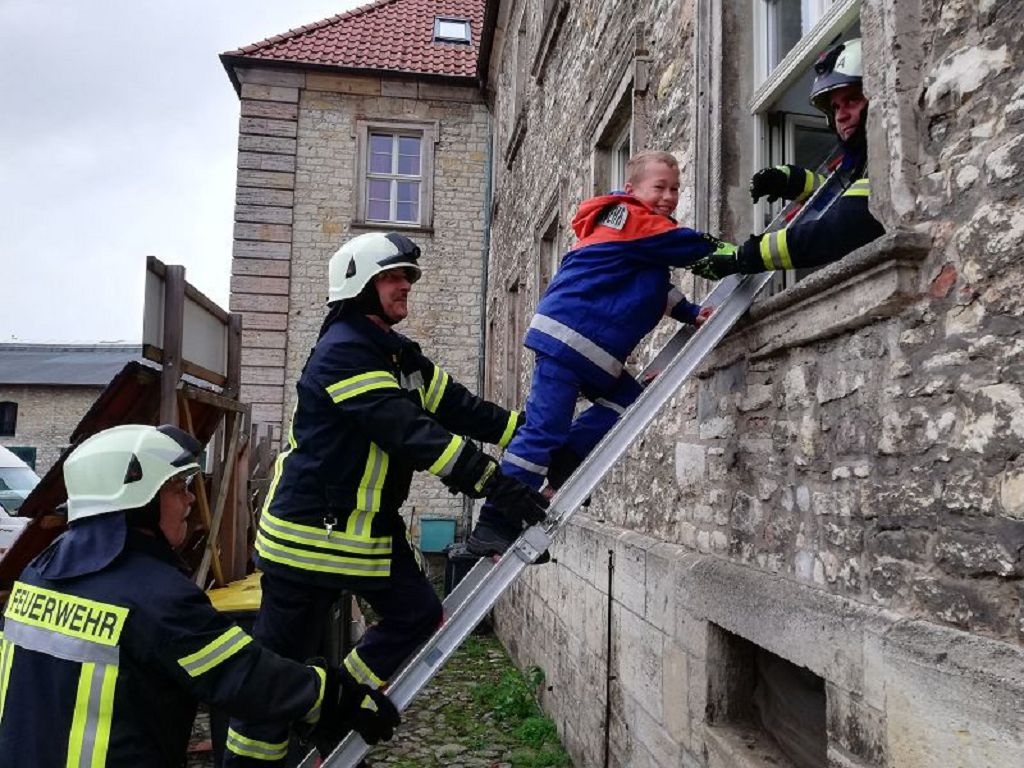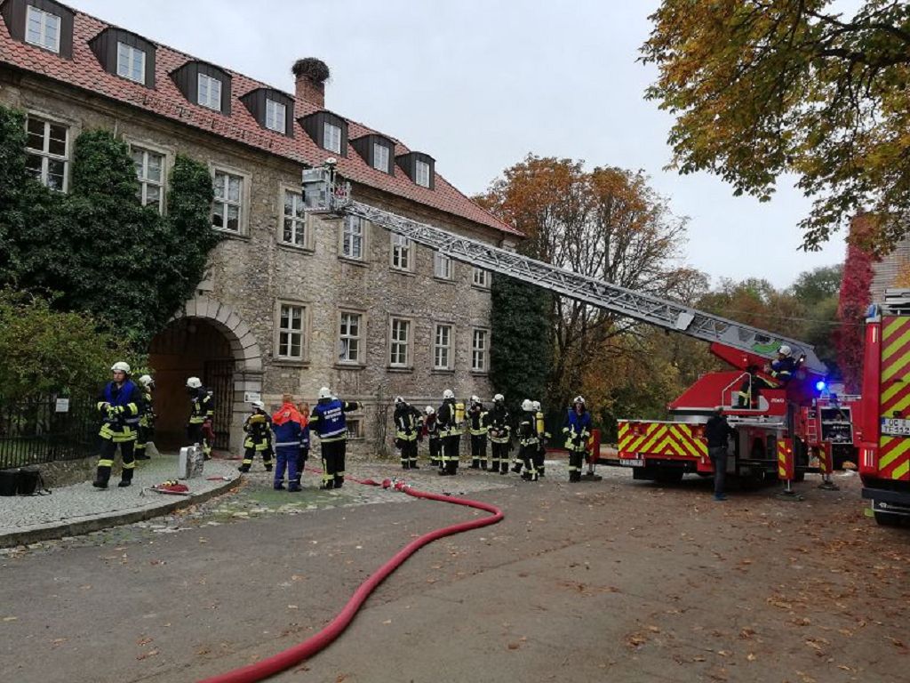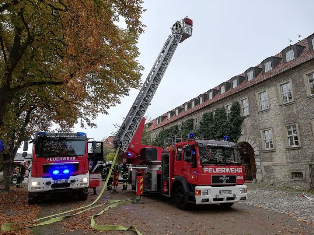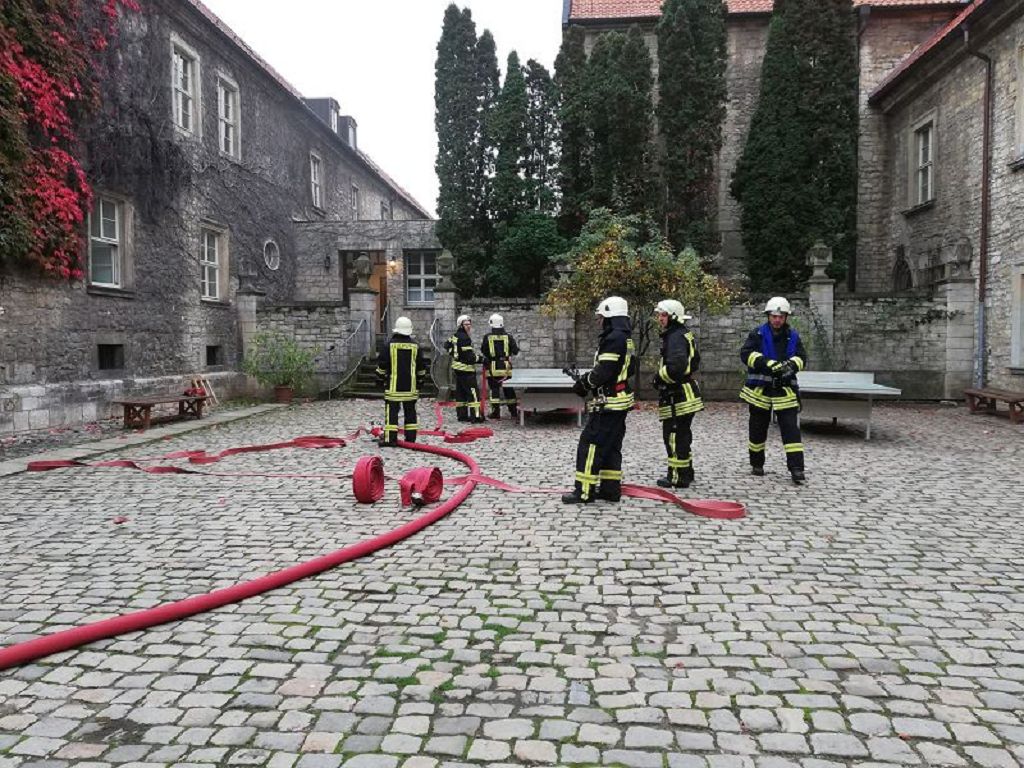 Übungsobjekt war die Internatsschule Hadmersleben. Das Übungskonzept sah vor, dass es zu einem Brand im Ostflügel der Schule kam, in dessen Folge 13 Personen vermisst wurden.4 Einsatzabschnitte wurden gebildet. Menschenrettung, Brandbekämpfung, Löschwasserversorgung und Betreuung. So wurden die rund 80 Einsatzkräfte den Abschnitten zugeteilt. Unterstützt wurden die Kräfte der Feuerwehr vom Malteser Rettungsdienst. Im weiteren Verlauf der Einsatzübung kam auch die Versorgungsgruppe der Hornhäuser Feuerwehr zum Einsatz. Einsatzleiter Matthias Hinz wurde von der örtlichen Einsatzleitung unterstützt. Nach rund 1,5 Stunden konnte die Einsatzübung beendet werden. Eine genaue Auswertung wird im Rahmen der Ausbildungsabende in der örtlichen Einsatzleitung erfolgen. Stadtwehrleiter Sven Könnecke bedankte sich recht herzlich bei allen eingesetzten Kräften für die Einsatzbereitschaft.