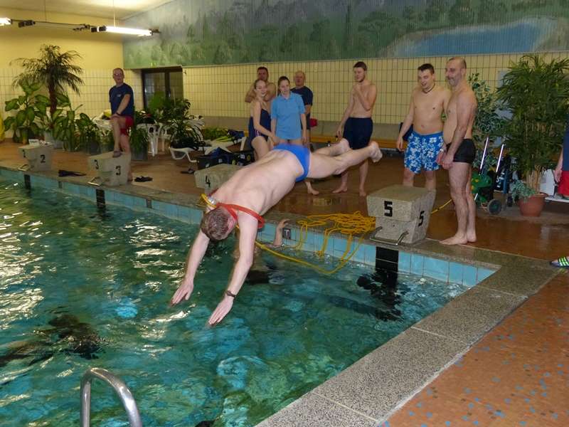 In Zusammenarbeit mit dem DRK Wasserwacht Ortsverband Oschersleben ging es am Montagabend in die Schwimmhalle. In drei Gruppen aufgeteilt, wurden im Stationsbetrieb verschiedene Übungen absolviert. Mit Rettungsleine und Rettungsball wurde die Rettung aus Gewässern gezeigt und geübt.